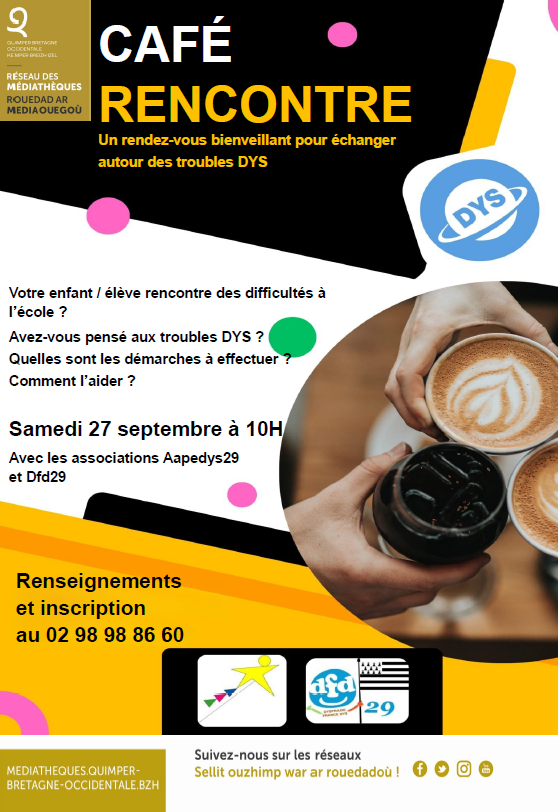 Les associations Aapedys29 et DFD29 organisent le samedi 27 septembre 2025 une rencontre à la médiathèque Alain-Gérard, à Quimper, à 10h.